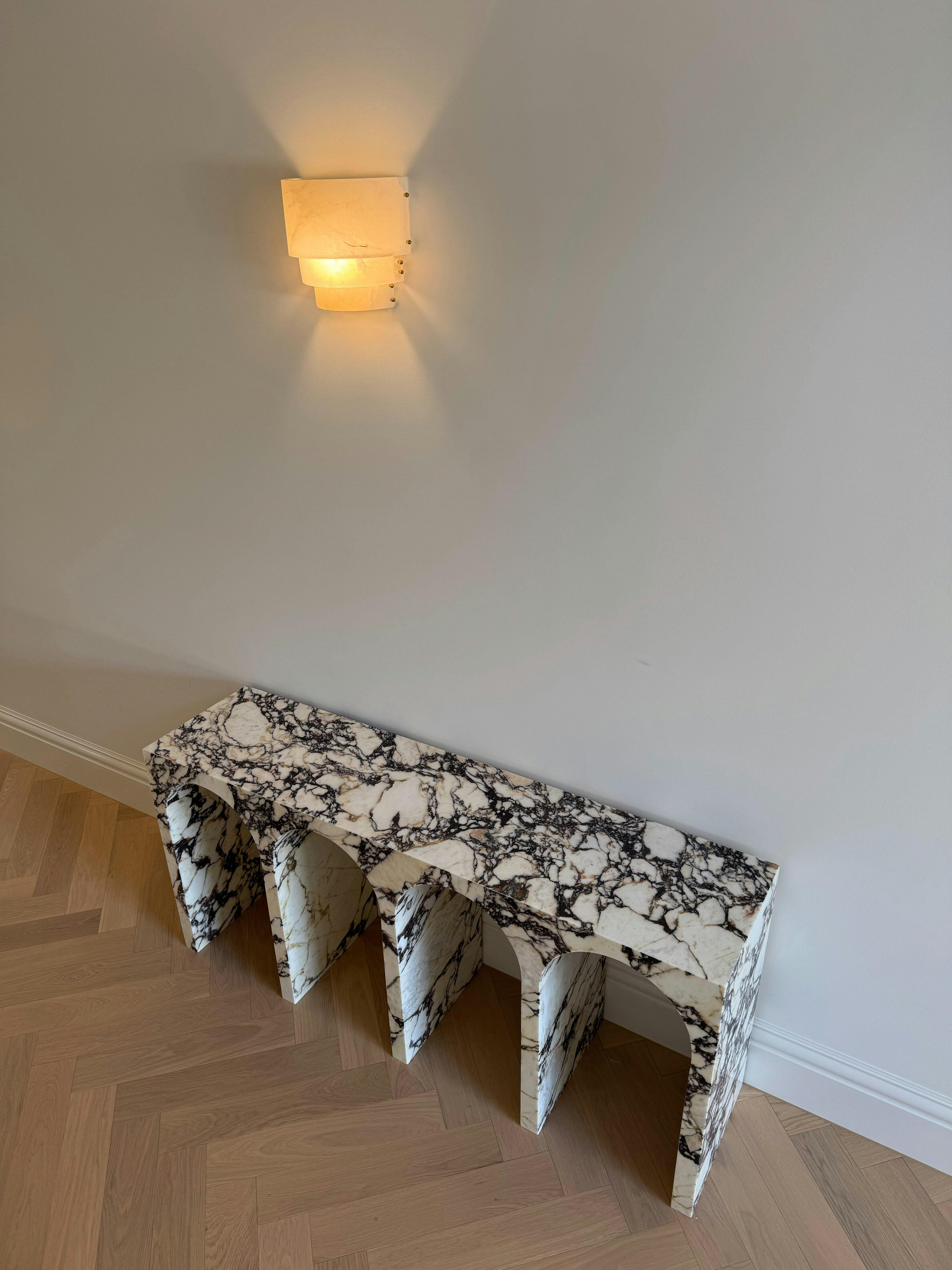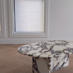 We had this coffee table custom made to match our console table, both cut from the same Calacatta Viola slab and the result is unbelievable.