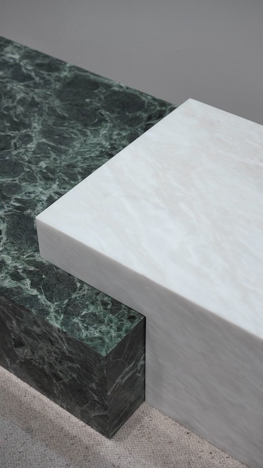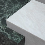 This two-tone marble table pairs Verdi Alpi Green with White Onyx, creating a bold yet balanced coffee centerpiece.
