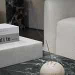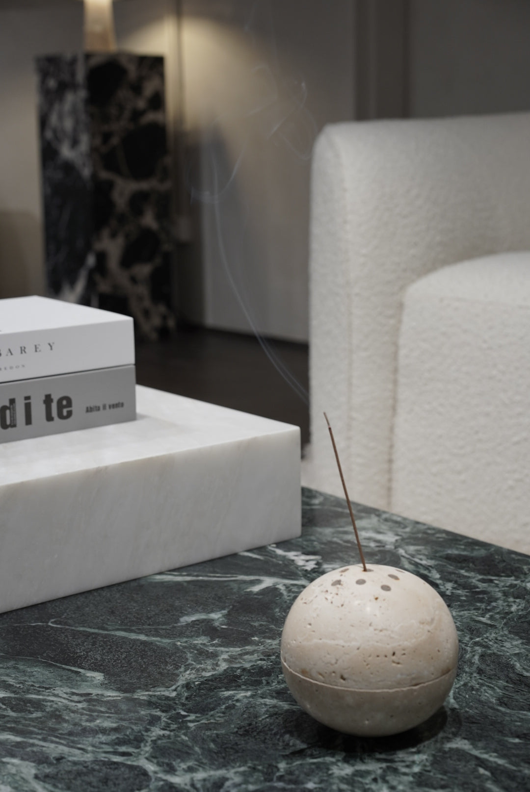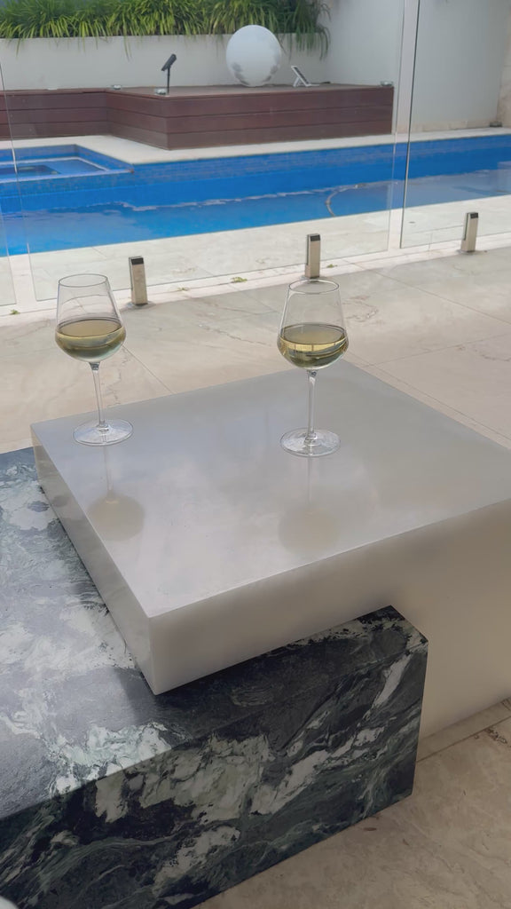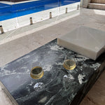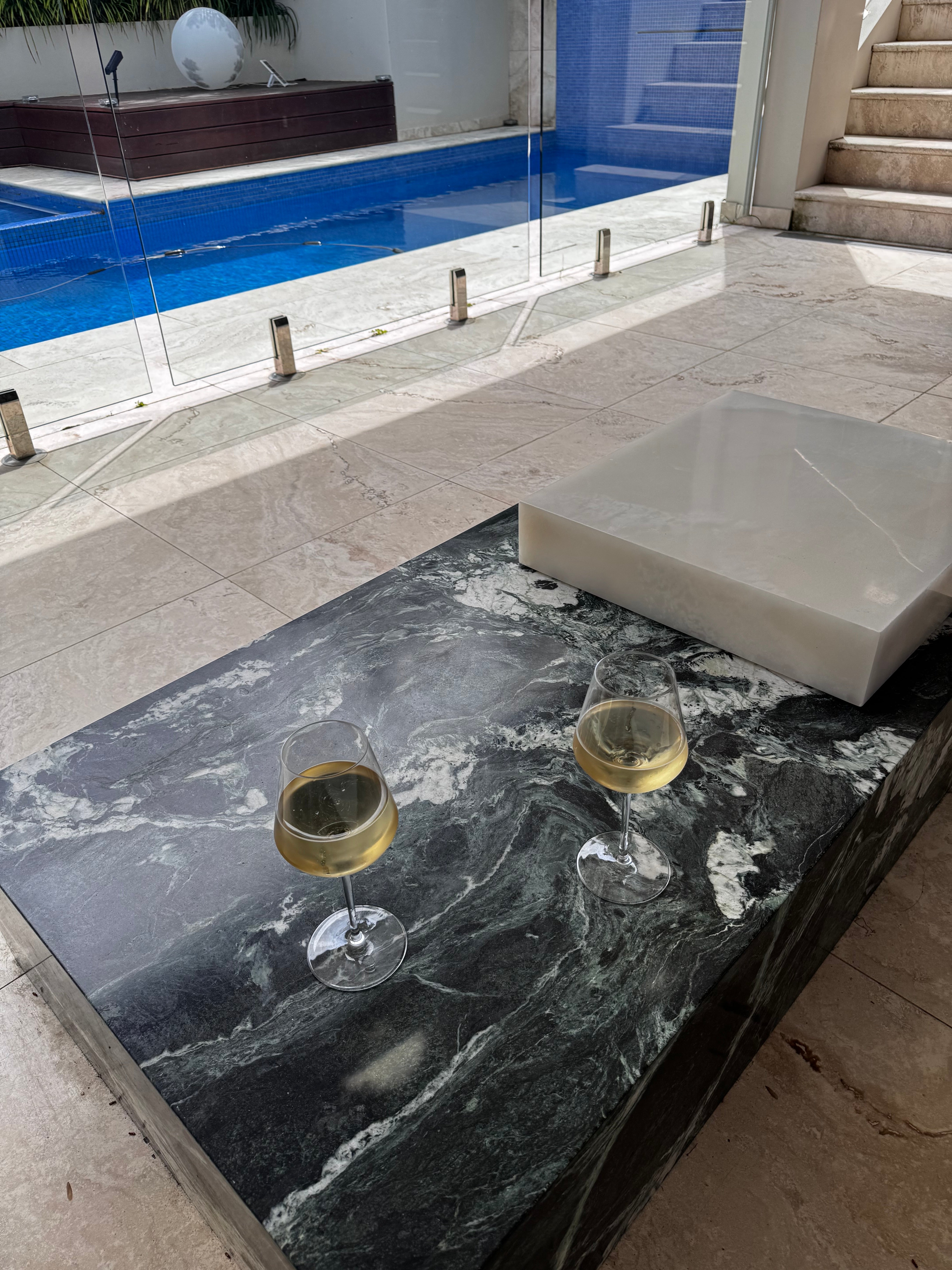 My Verdi Alpi green and White Onyx coffee table combo looks right at home by the pool. The soft tones of the stone melt into the sunlight and greenery, calm, natural, effortless. It’s become my favourite spot to unwind.