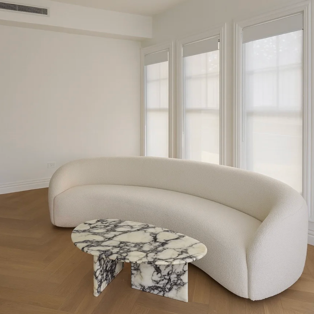 The Eggshell oval marble table is a Calacatta Viola marble coffee table that brings timeless elegance to your living space. Its luxurious finish and intricate veining make it a showstopper.