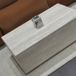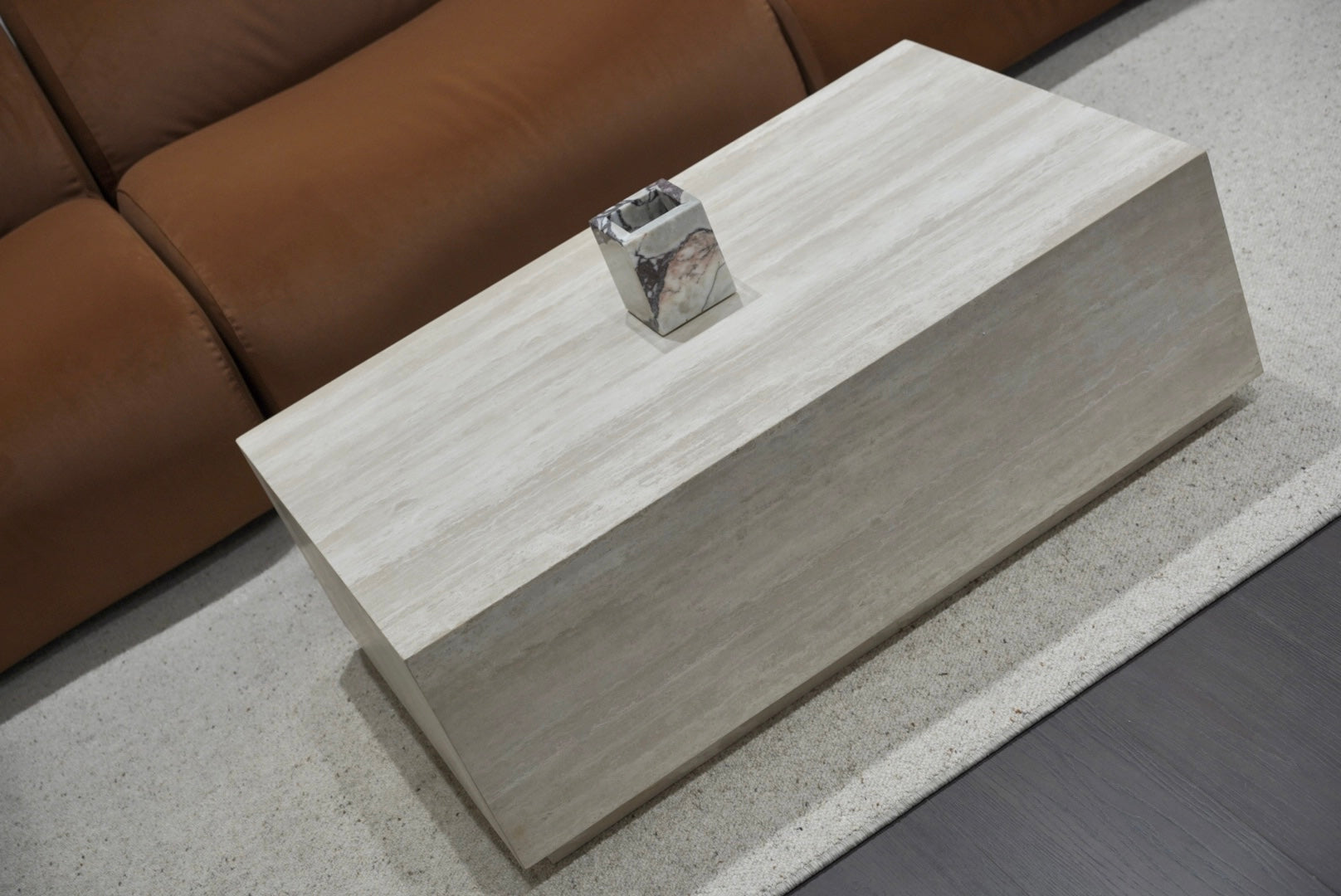 Crafted from creamy beige Travertine, the Siena Plinth Coffee Table embodies timeless simplicity with a contemporary edge. Its clean rectangular silhouette  highlights the natural linear veins and subtle tonal variations of the stone, making each piece entirely unique.