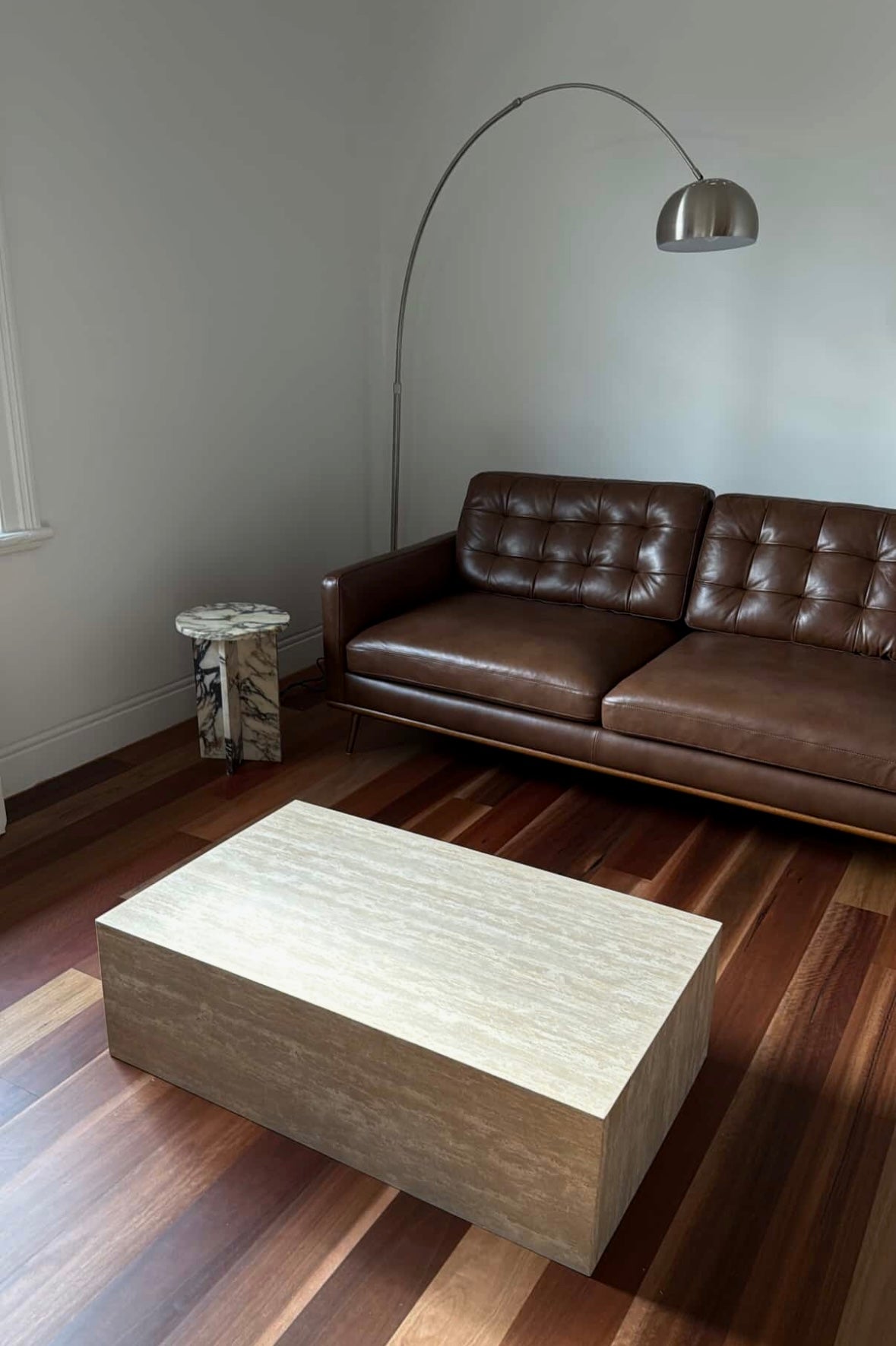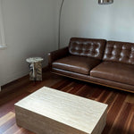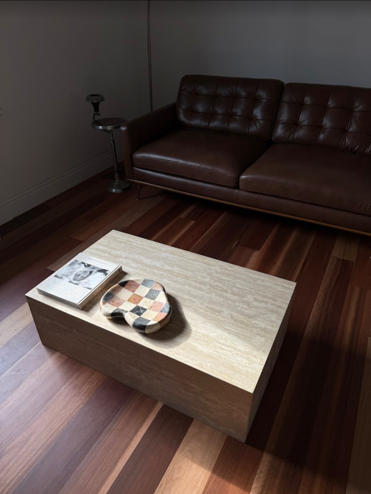 Crafted from creamy beige Travertine, the Siena Plinth Coffee Table embodies timeless simplicity with a contemporary edge. Its clean rectangular silhouette highlights the natural linear veins and subtle tonal variations of the stone, making each piece entirely unique.