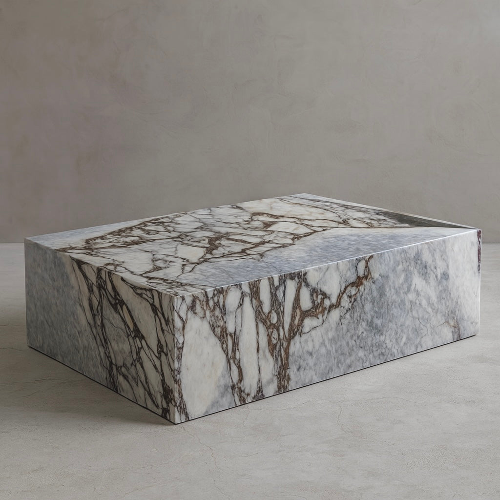 Crafted from rare Calacatta Nero marble, the Monument Coffee Table embodies timeless elegance and architectural presence. With its bold veining in deep charcoal, warm beige, and ivory tones, each piece is a one-of-a-kind expression of nature’s artistry.