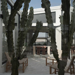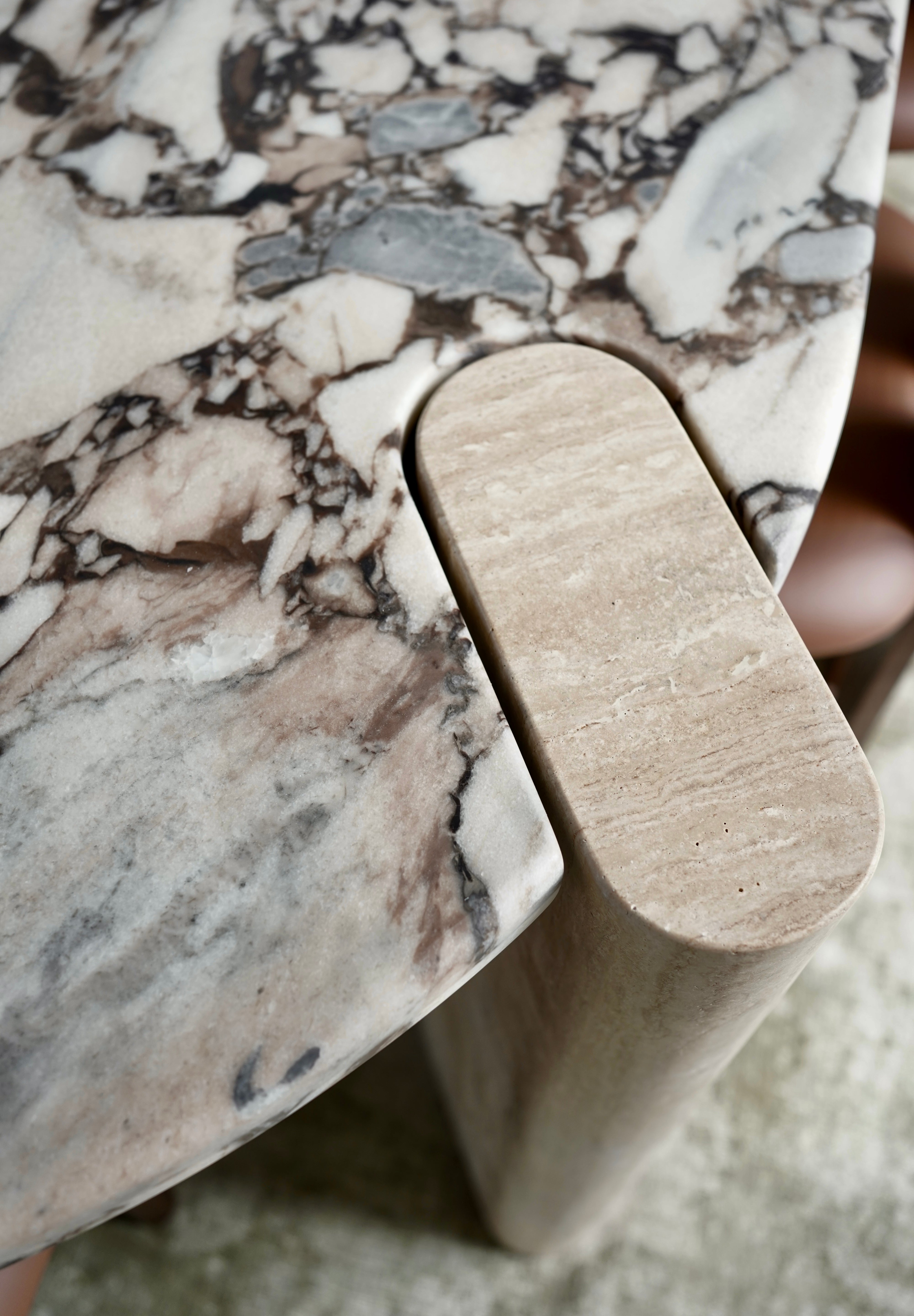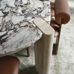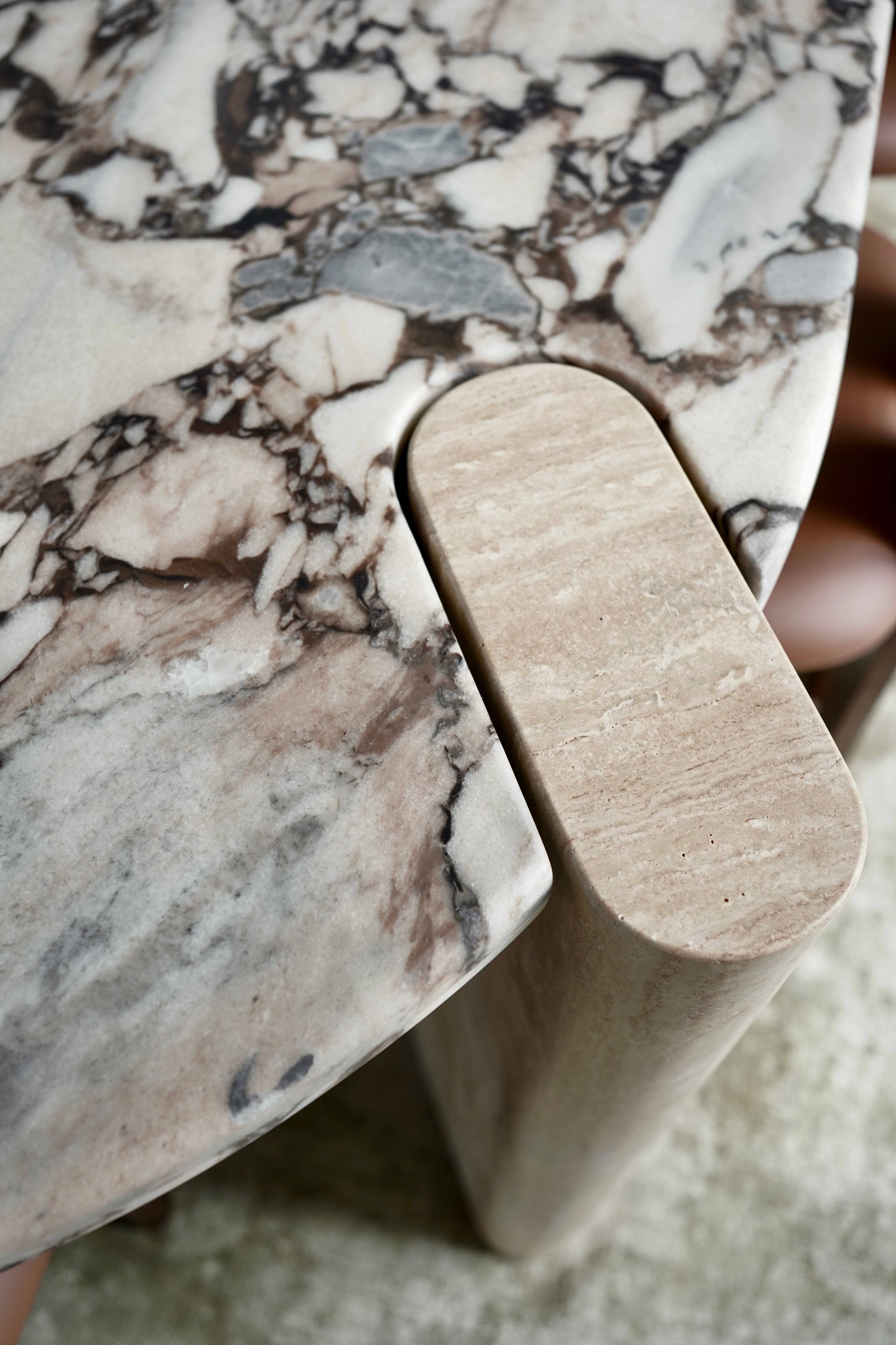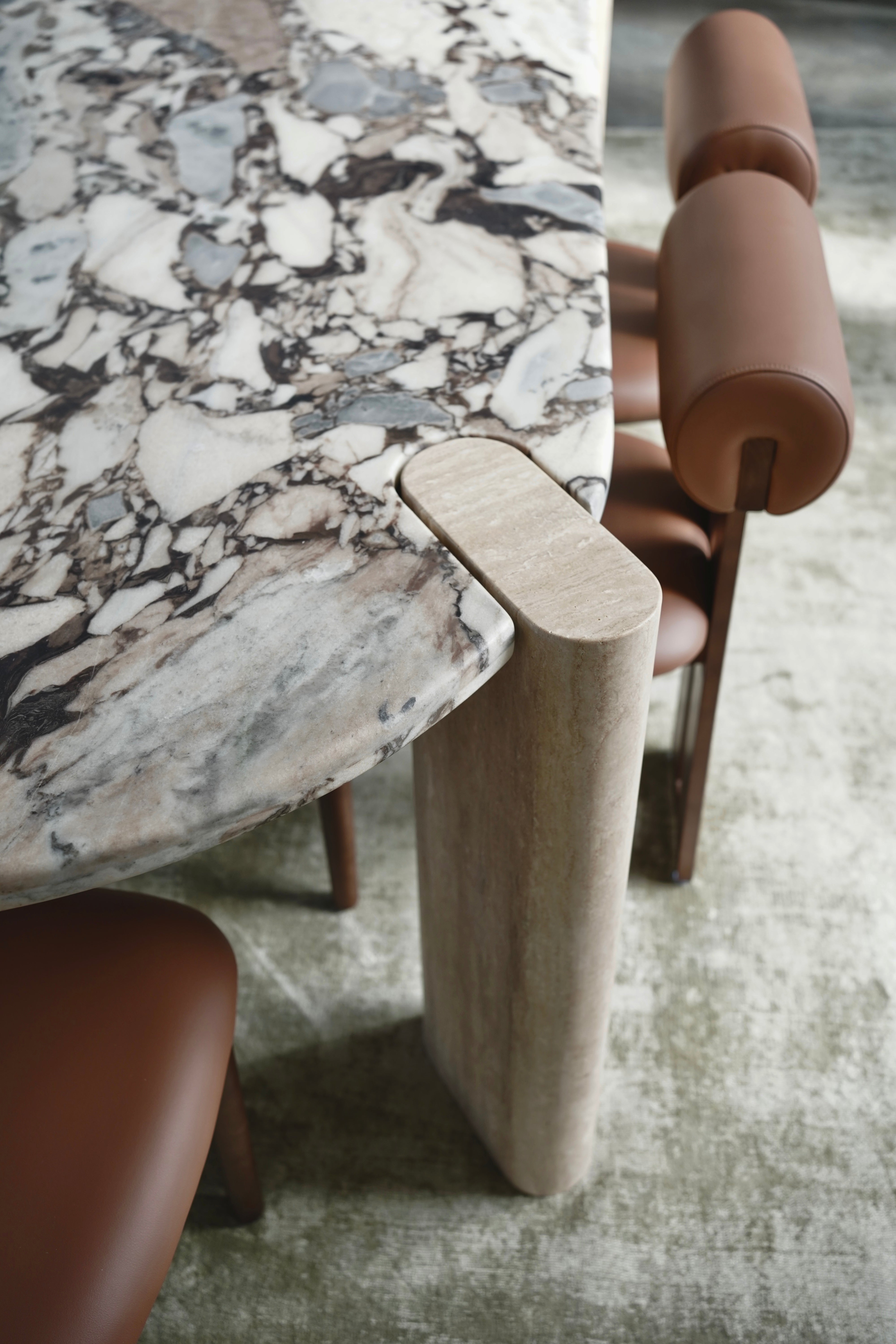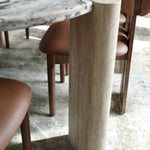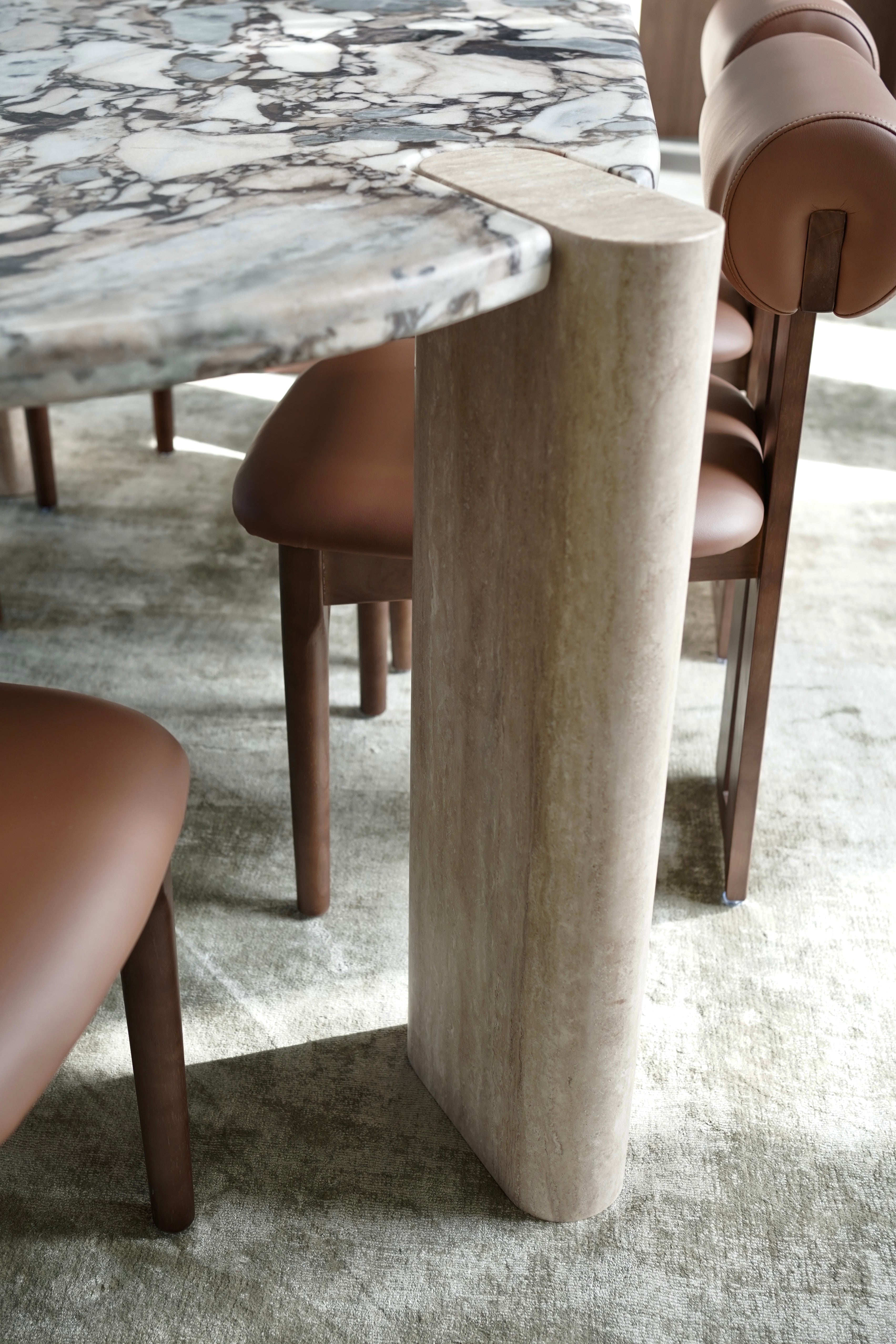Crafted from solid travertine legs, each column carries subtle pores and tonal variations unique to the stone. The weight, texture, and authenticity of full-body travertine bring a grounded, architectural feel that cannot be replicated by hollow or engineered materials.