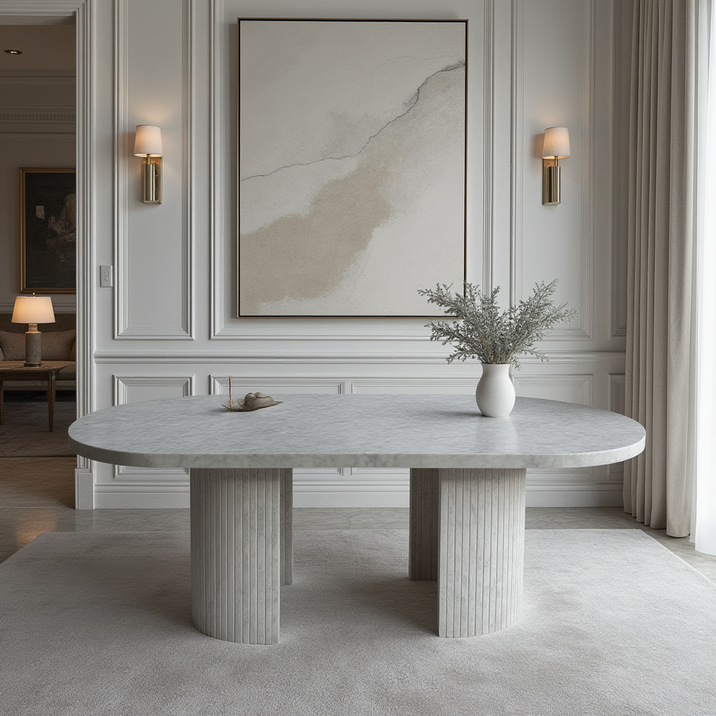 This Velora Oval Marble Dining Table showcases the natural beauty of marble. Its smooth surface and unique veining patterns create a sense of luxury and sophistication.