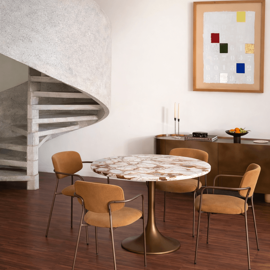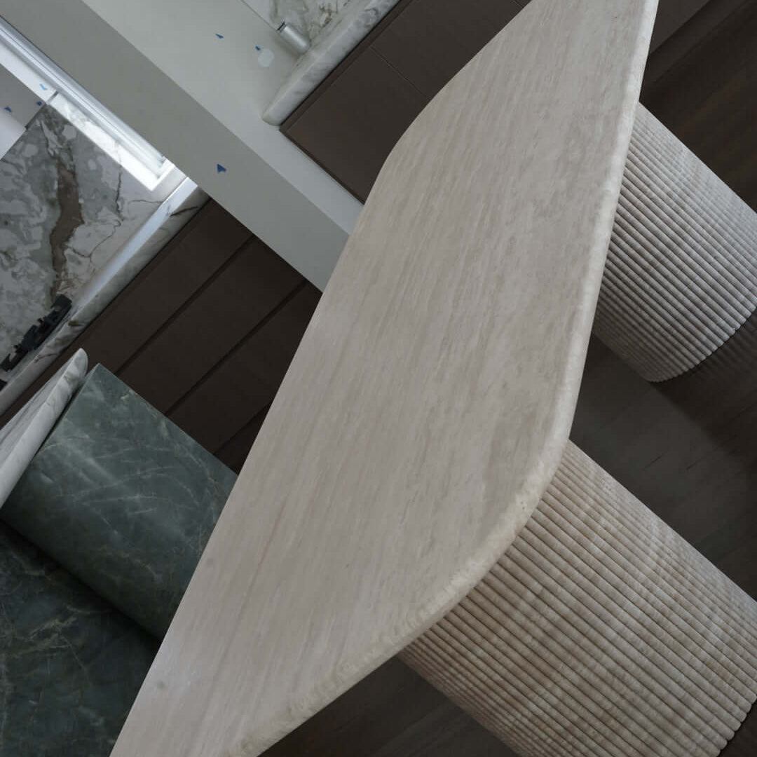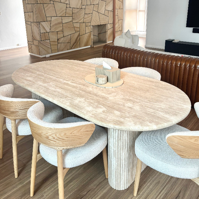 • Travertine Dining Table – Understated, earthy, and warm. Travertine brings a natural softness ideal for contemporary or rustic interiors.