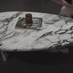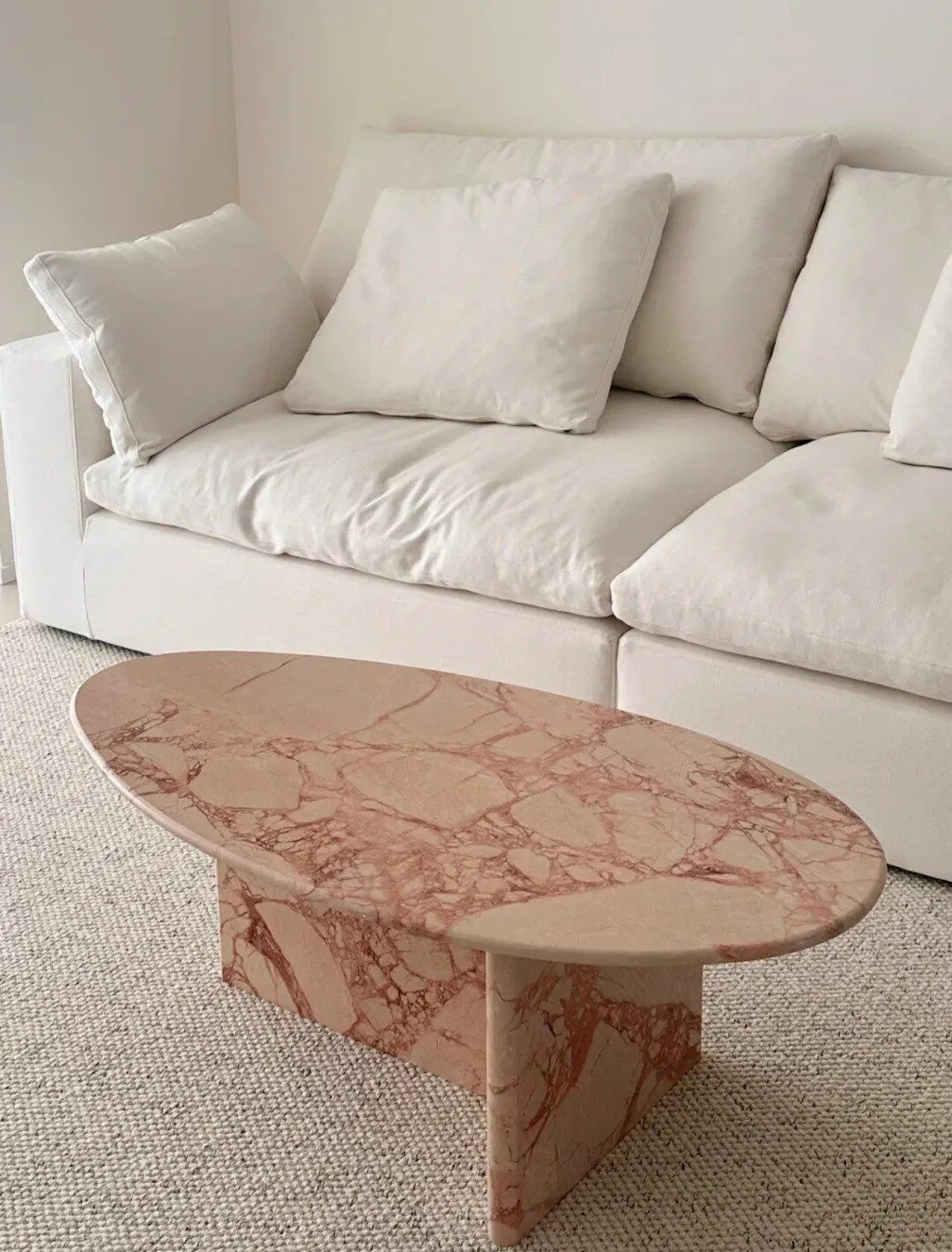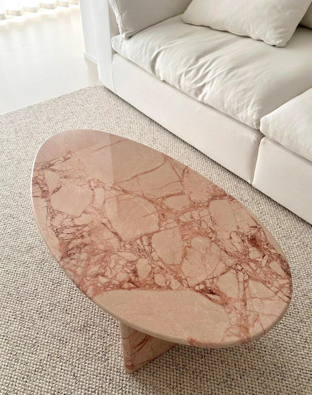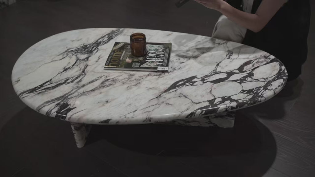 The Ovo marble table is a Calacatta Viola marble coffee table that brings timeless elegance to your living space. Its luxurious finish and intricate veining make it a showstopper.