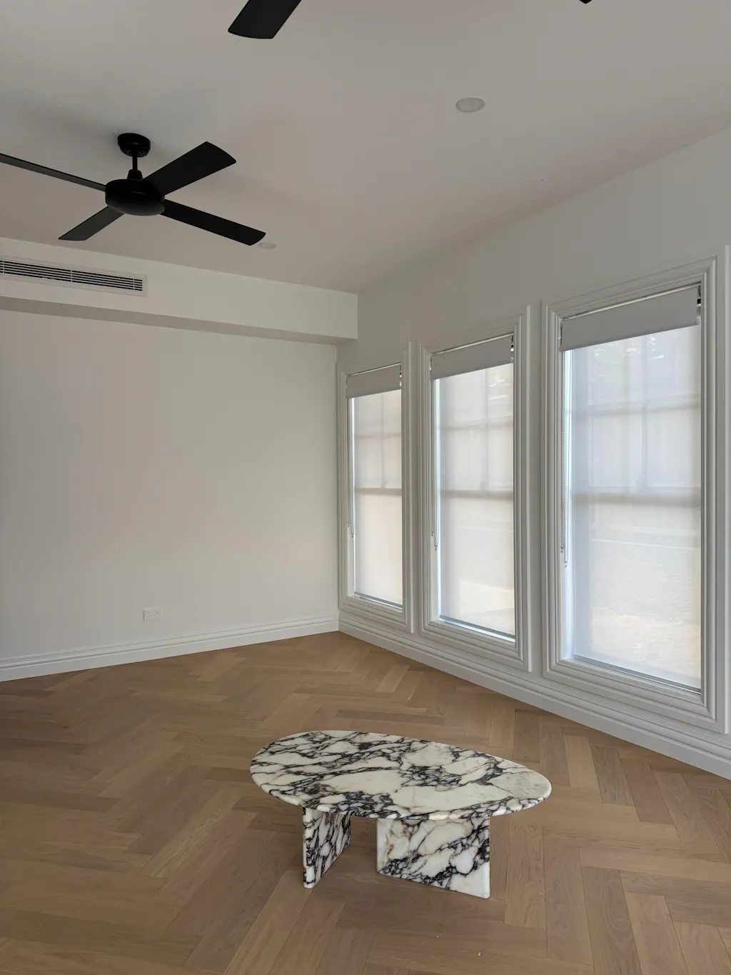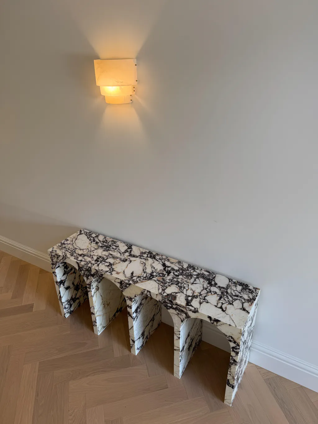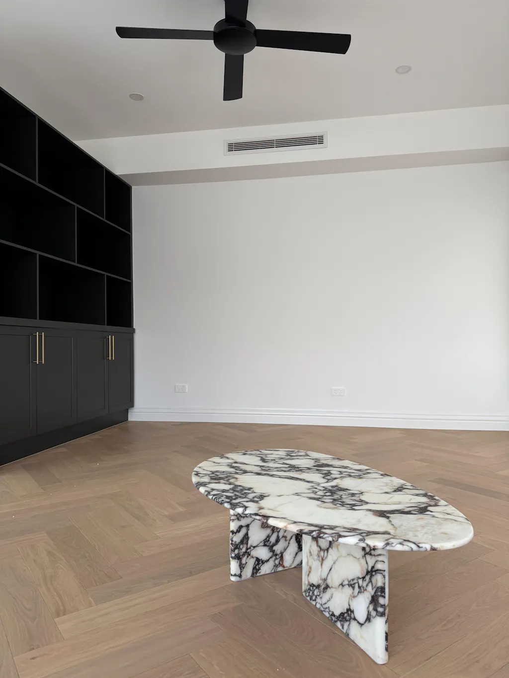 We had this coffee table custom made to match our console table, both cut from the same Calacatta Viola slab and the result is unbelievable.