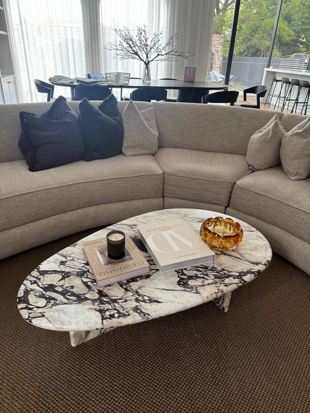 Such a good match with our curved sofa. The organic shape makes the living room feel more relaxed and modern.