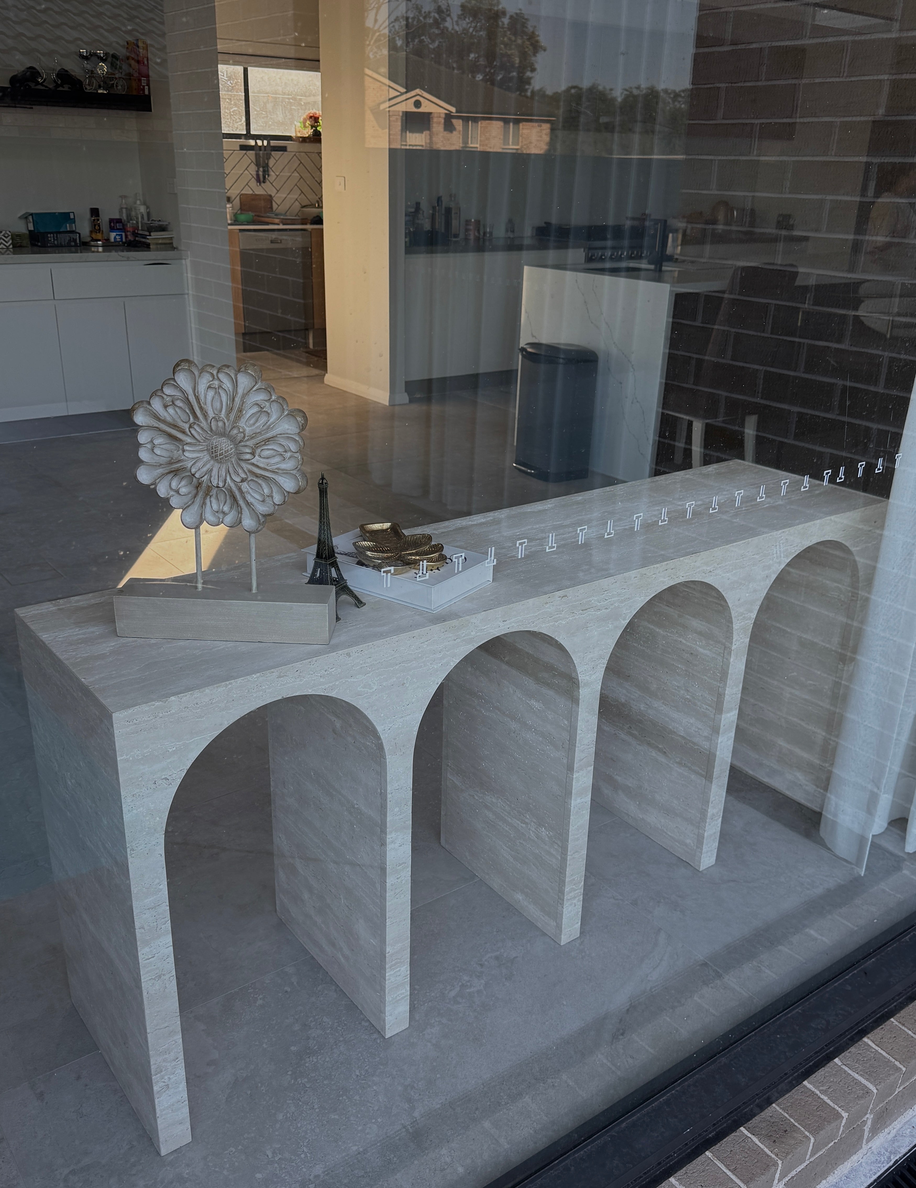 This console is the perfect fit for our open-plan living area. The travertine adds warmth and texture without feeling heavy.