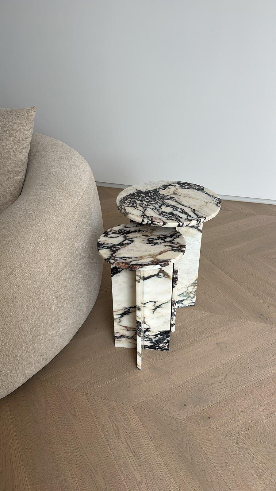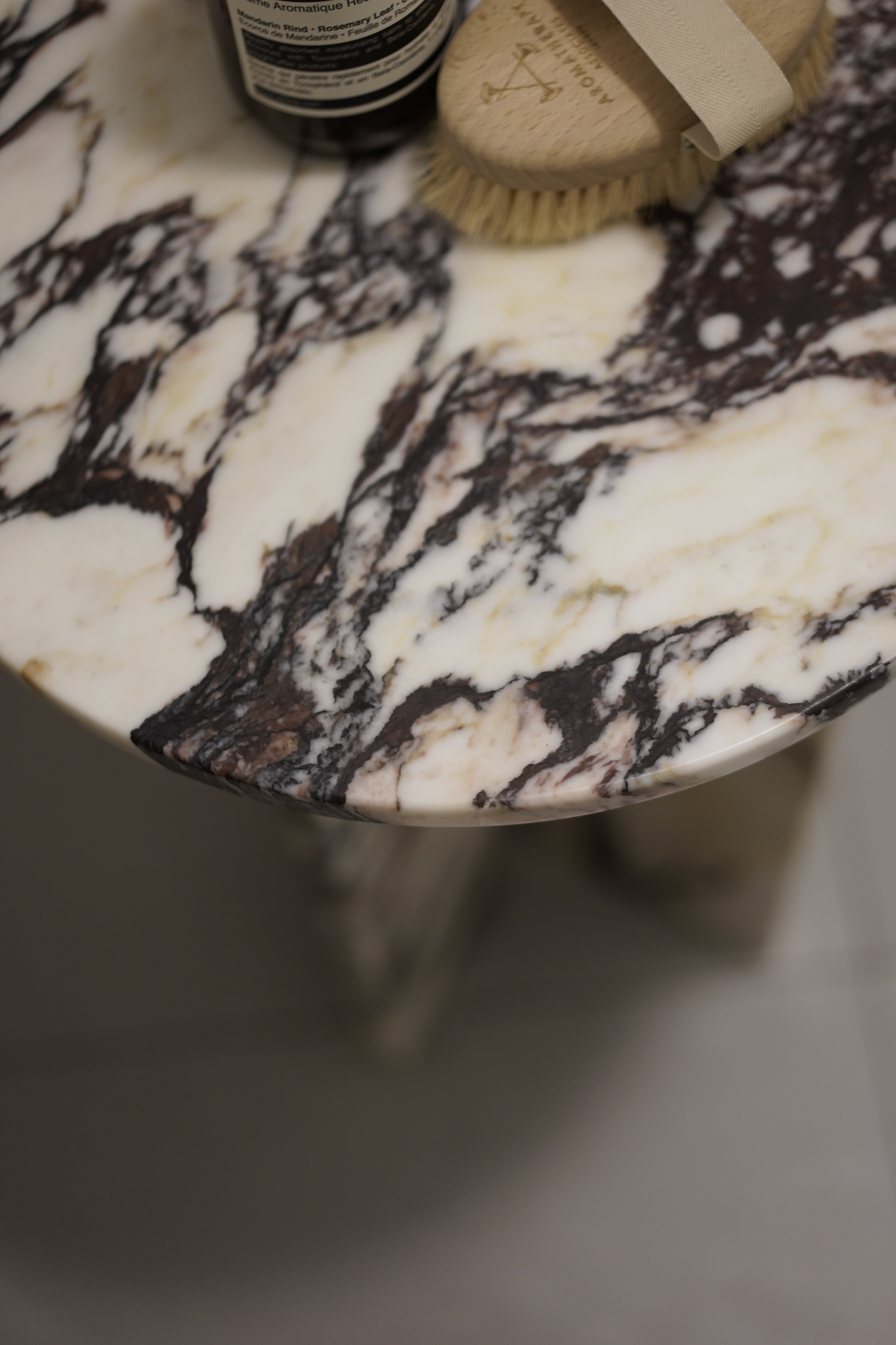 The Veneto marble table is a refined side table made from Calacatta Viola marble, known for its bold veining and luxurious feel. A true statement of elegance, it complements both classic and modern interiors.