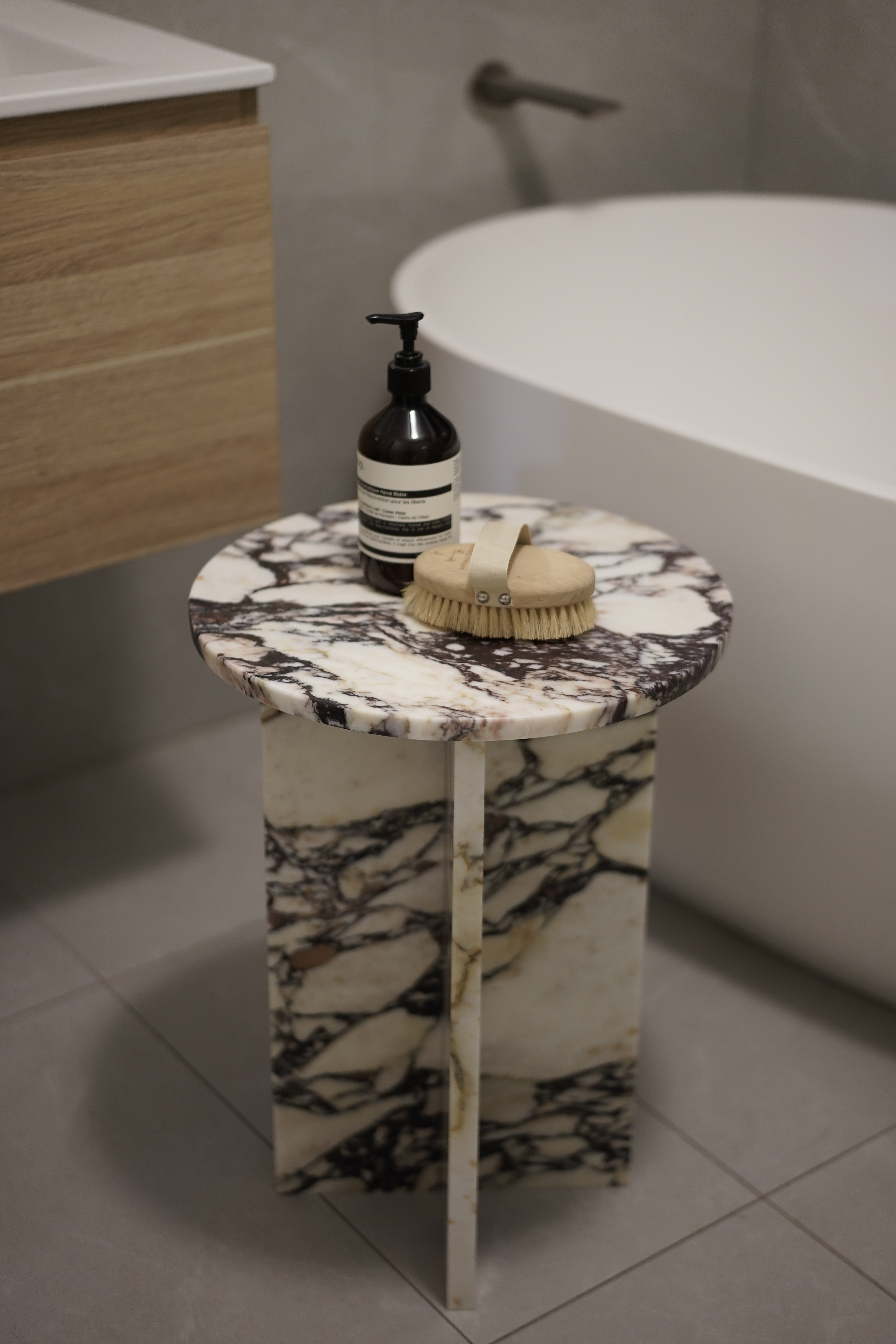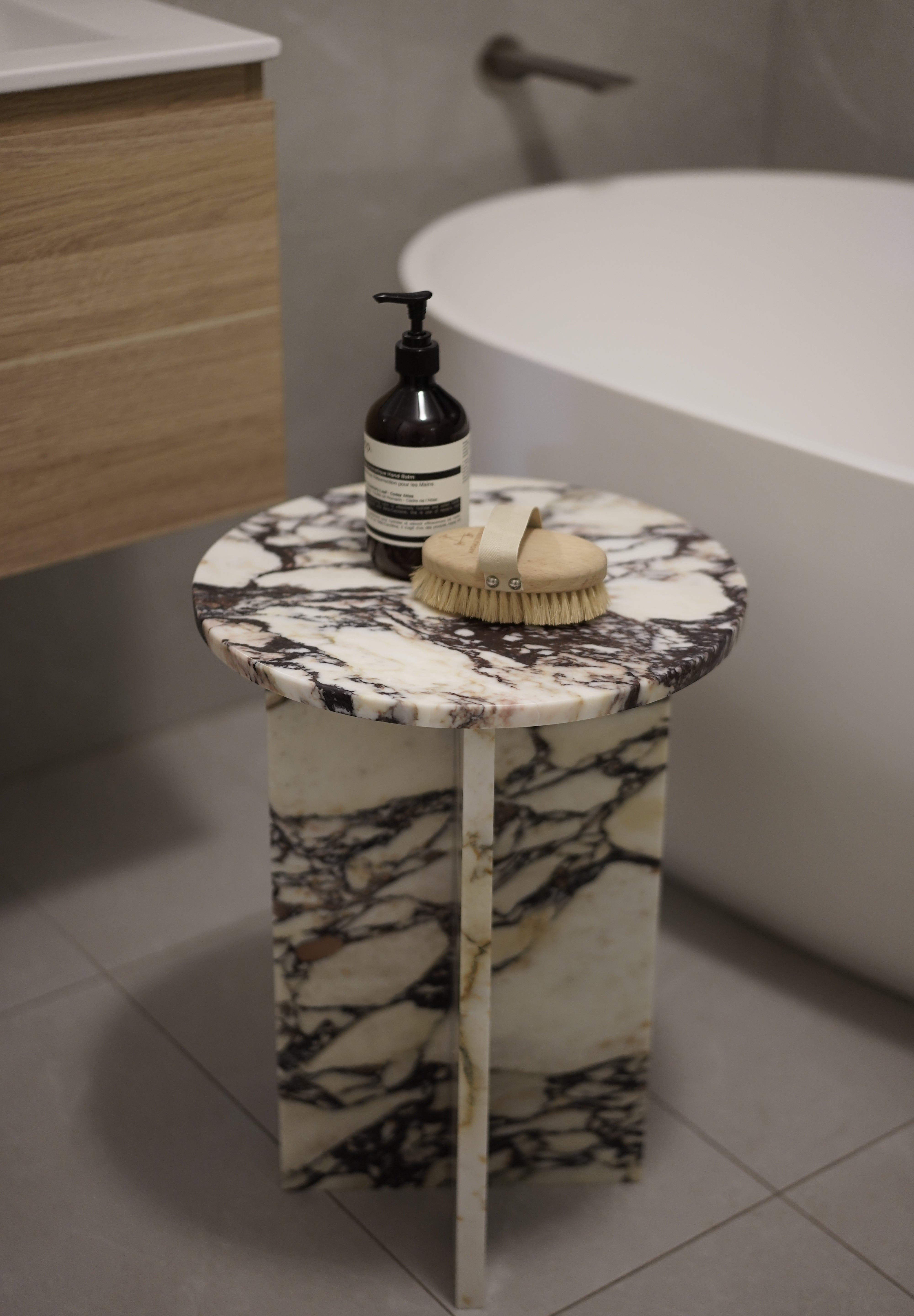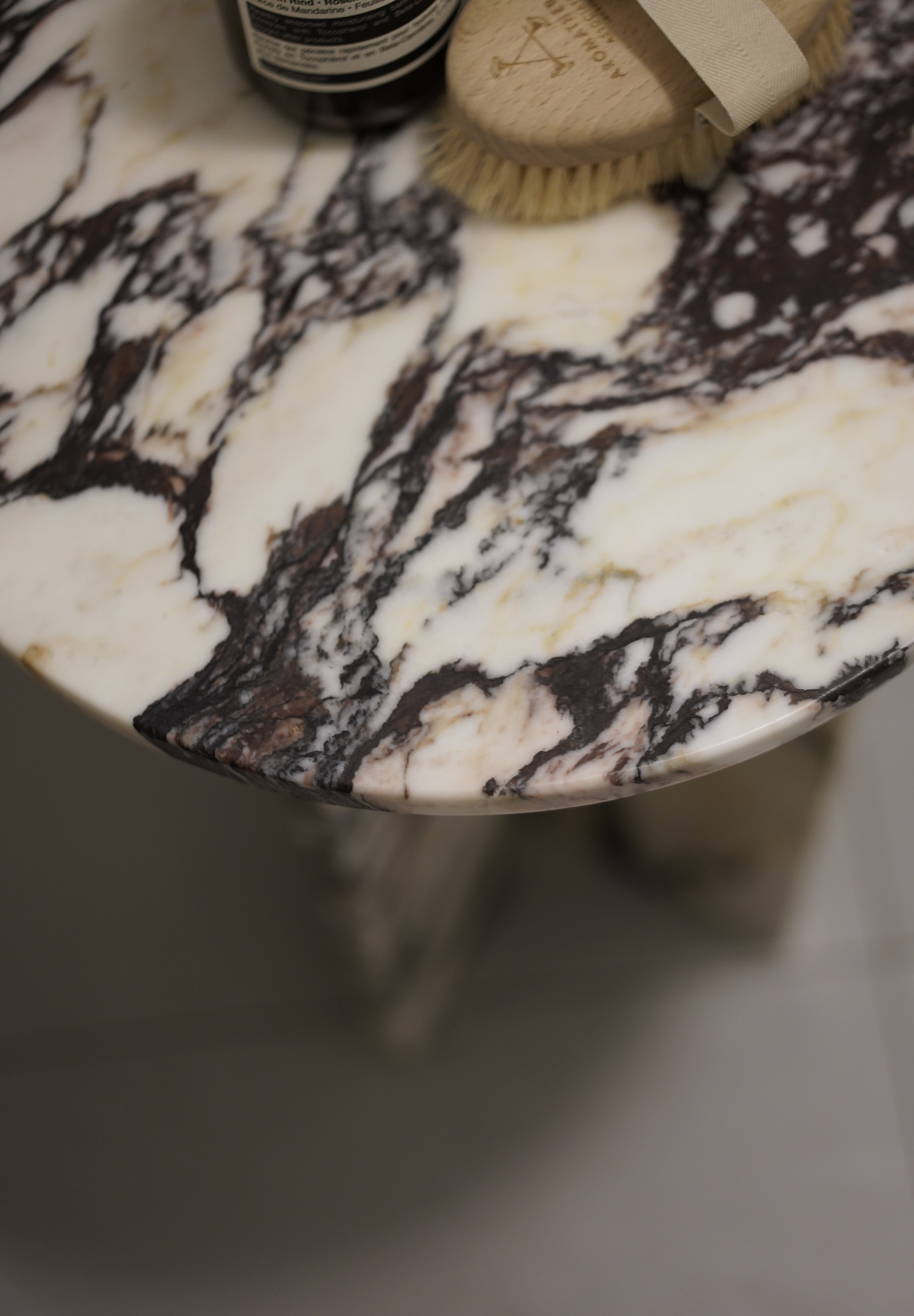 So happy with this side table set. The marble veining is gorgeous and each piece feels really well made. They sit perfectly next to the sofa. I also ordered a custom console table and coffee table in Viola. Honestly, I just can’t stop buying from this store.