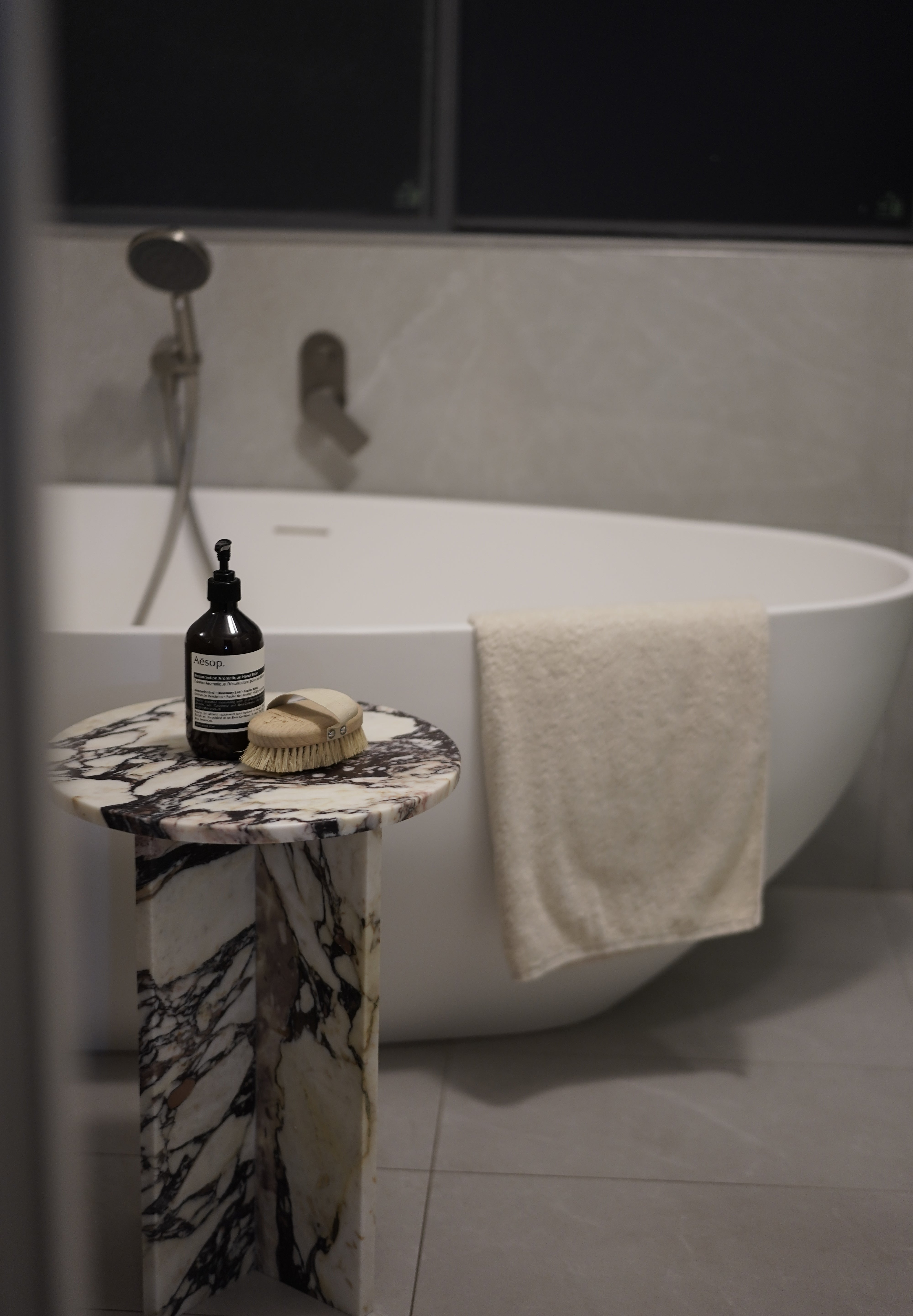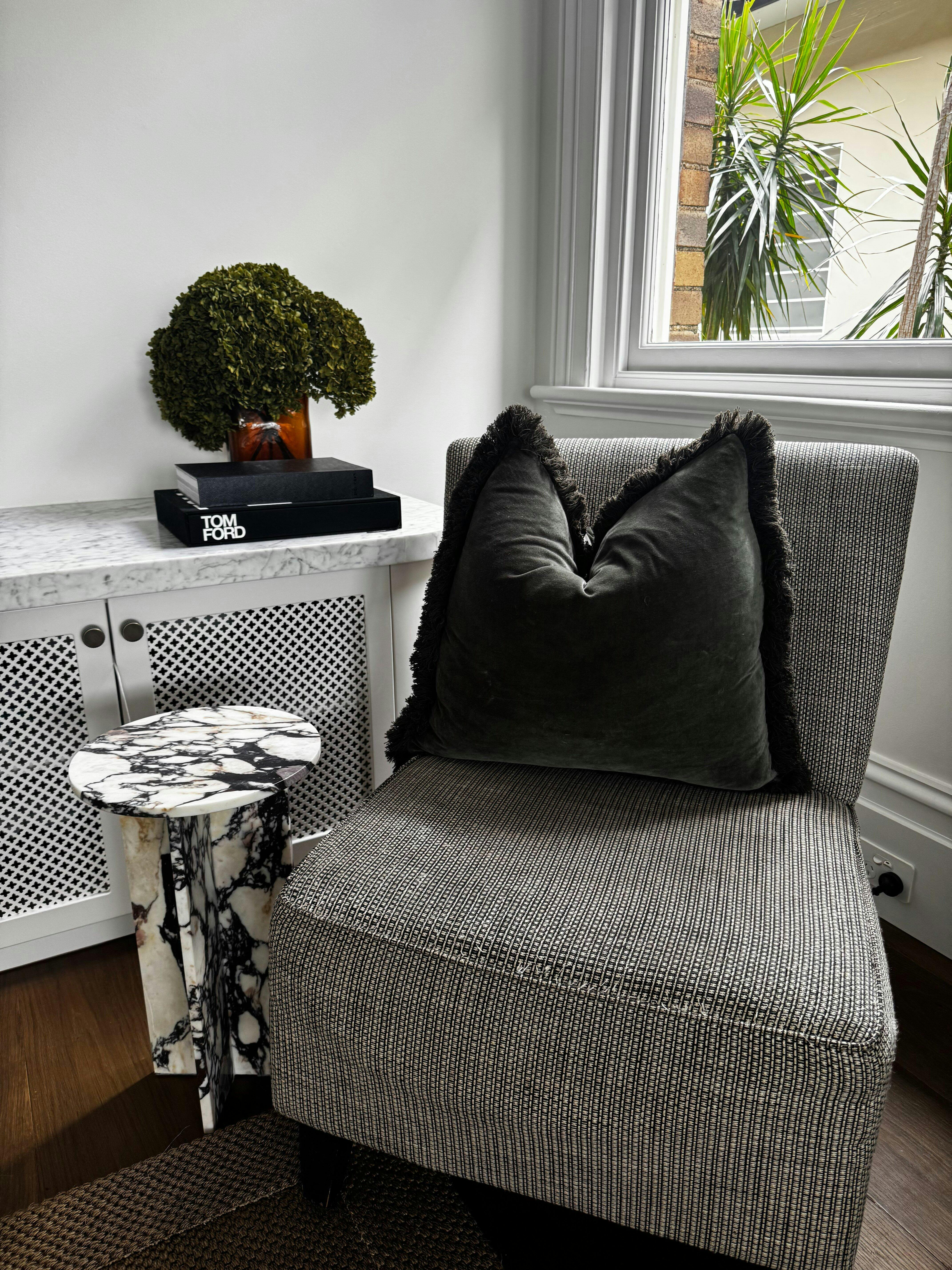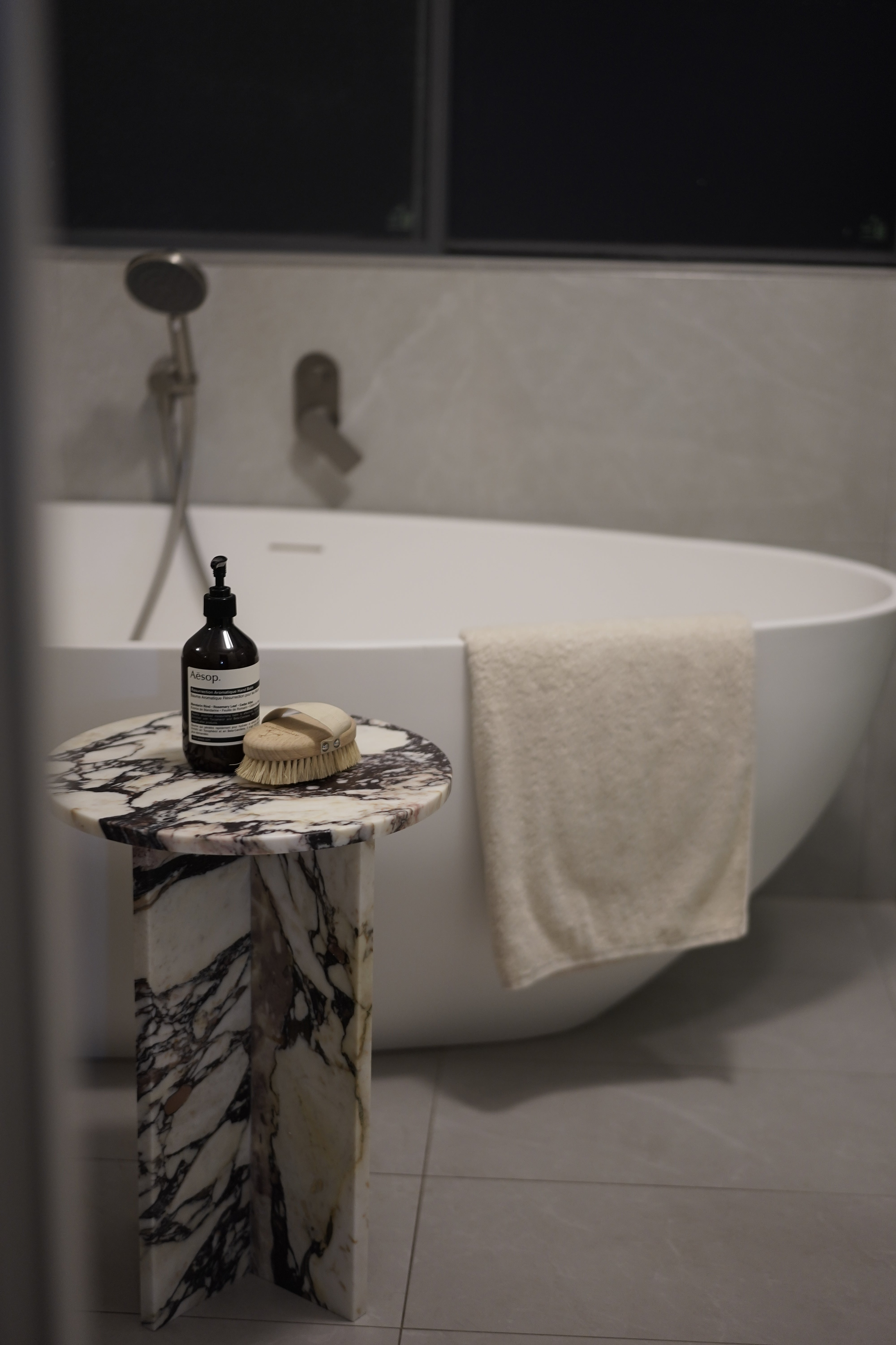 So happy with this side table set. The marble veining is gorgeous and each piece feels really well made. They sit perfectly next to the sofa. I also ordered a custom console table and coffee table in Viola. Honestly, I just can’t stop buying from this store.