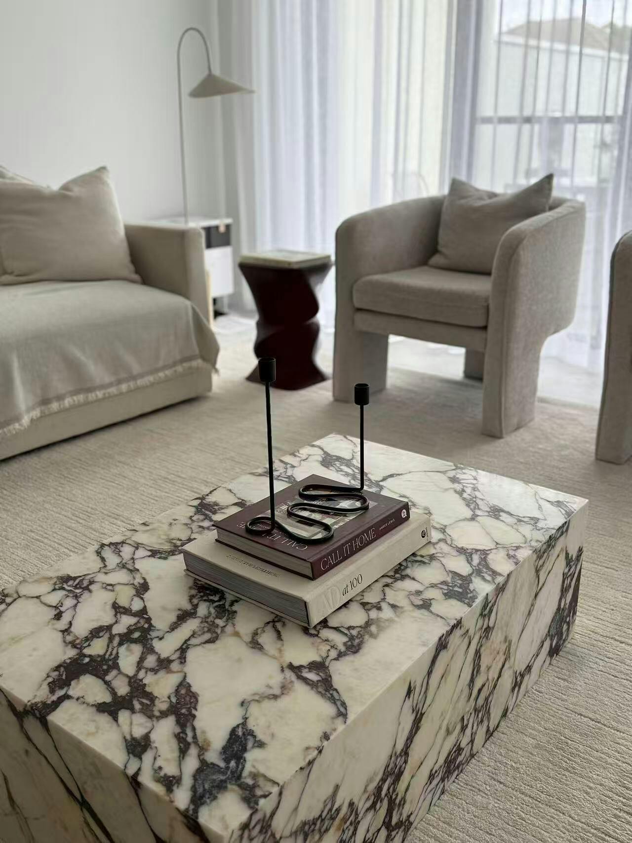 This marble coffee table is stunning in person. Solid, timeless, and instantly elevates the room.