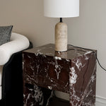 The marble bedside table matches my bedhead perfectly, so cohesive. Looks custom with my bed. Just love the tones together.