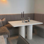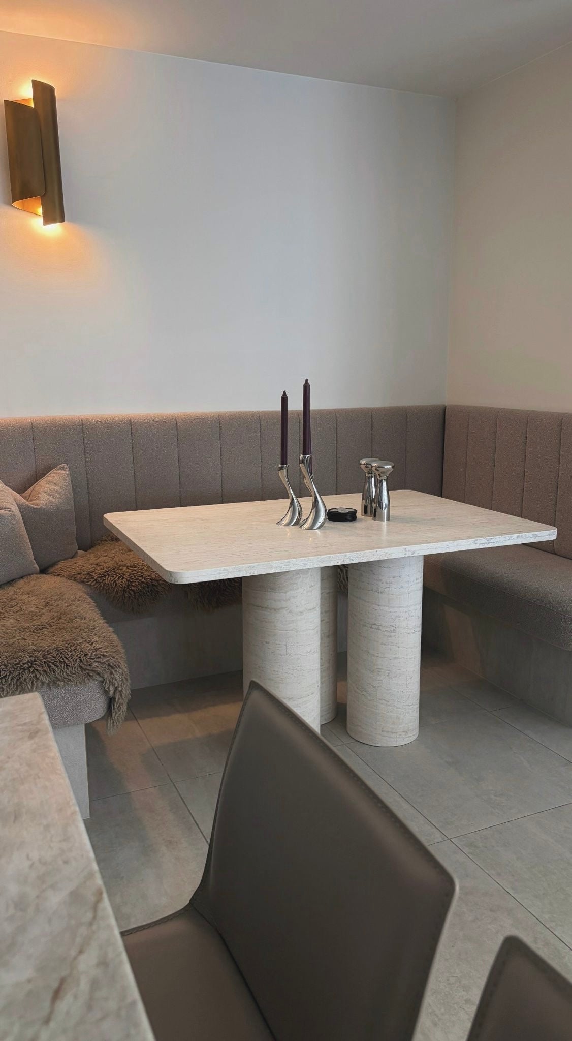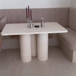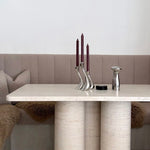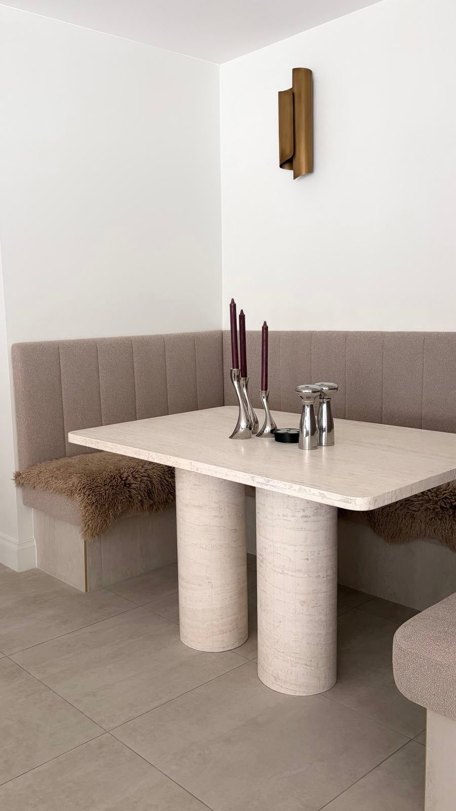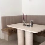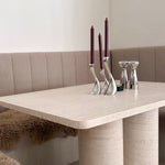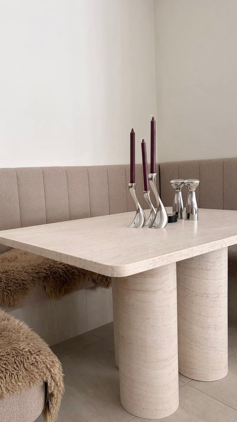 The Aurelia Travertine Dining Table is a celebration of timeless stone and architectural balance.