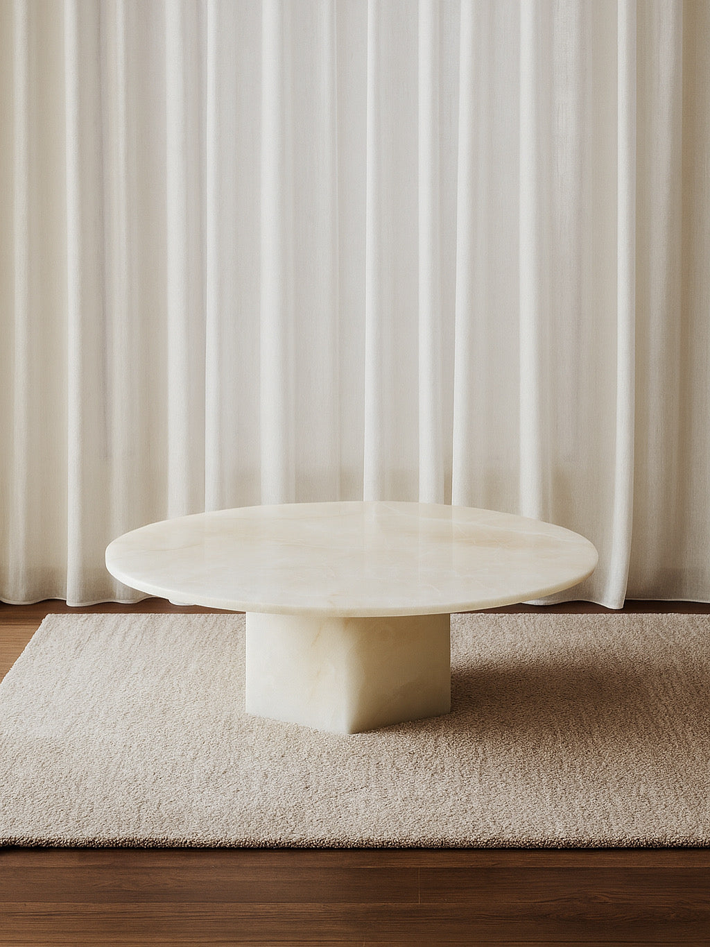 Crafted from exquisite Italian White Onyx, the Aurora Coffee Table is a true statement piece for modern interiors. Its luminous surface features subtle cream and ivory veining that seems to glow from within, creating a sense of calm luxury.